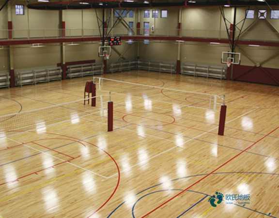 而备受体育场馆欢迎。但复合地板多为三层或多层木经涂胶热压而成,势必存在一定量的甲醛,塑胶地板材质较轻,破损后无法修复,沾水或使用时间长了就会很滑,无法真正为运动人提供很好的运动体验。欧氏运动木地板运动木地板,以枫桦木、枫木、柞木等天然实木为原料,木质细腻,纹理清晰,与人体契合度较高,能管用的提高运动员活动时的舒适性,并且其本身就是就是软硬适中,使用效果远远超越复合地板和塑胶地板,还可以起到减震?;さ男Ч?。在运动木地板普及之前,PVC塑胶地板经常被运用于体育场馆的地面铺装。然而作为塑胶地板,其极易聚积粉尘、皮屑等微粒物质,时间长了会越用越硬,每日对其进行吸尘、清洁、打理过程十分艰难。一旦有灰尘沉淀堆积。
