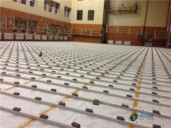 其主要的性能指标冲击吸收率和标准垂直变形只要求≥35%和≥1.0mm,且场地面积在600mm2的中小型体育馆[20],基本无观众台等设施,可作为一般性的训练和性的比赛用。该结构适用于建造规模小,投资少,使用频率和密度相对稳定的中小学、设区、工企健身用综合性场馆。体育馆木地板和舞台木地板是以龙骨结构系统来安装的。欧氏运动木地板工程师今天详解双层结构体育馆用木质地板。双层结构体育木地板具有防潮层,其作用是防止建筑结构基层因温湿度变化引起的体育木地板结构发生变形或起鼓;在双层结构的体育木地板中,毛地板层和龙骨层根据不同结构形式和要求决定是否采用双毛地板层和双龙骨层,或毛地板层与龙骨层各一层的复合结构形式;