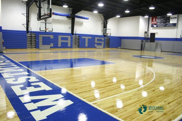是篮球场馆理想的铺装材料。枫木地板又分为A级、B级两种级别。枫木A级双层龙骨主要应用于大学体育场馆,职高室内体育馆以及大运会,全运会等专业篮球,羽毛球比赛场地。首钢篮球中心、五棵松篮球馆都是欧氏枫木篮球地板铺装的。欧氏枫木B级双层龙骨主要应用于地面预留度较高的篮球场馆。篮球馆木地板是根据初始水泥地上上的一个悬浮式构造层,有单龙骨、双龙骨、主辅龙骨和板式龙骨。单龙骨规范高度为85mm,单层龙骨是区别于双层龙骨的一种结构系统,主要特点是球的回弹率功能更好,主要针对于空气干燥地区。双龙骨规范高度为130mm,所以在地上基建时,必定要预留出空间。双龙骨结构稳定,吸震抗压,适合运动量比较大的篮球场馆。篮球场馆工程商和甲方要明白。