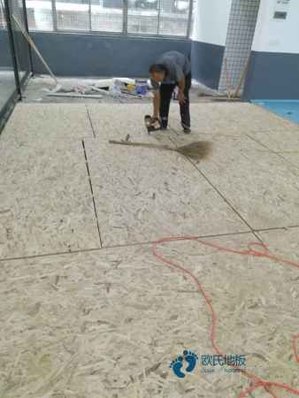 二、场地清扫:篮球馆木地板安装进场前首先检查地面有没有做防水,尤其是一层地面,然后对场地进行清扫,铲除水泥砂浆虚浮物备用。
